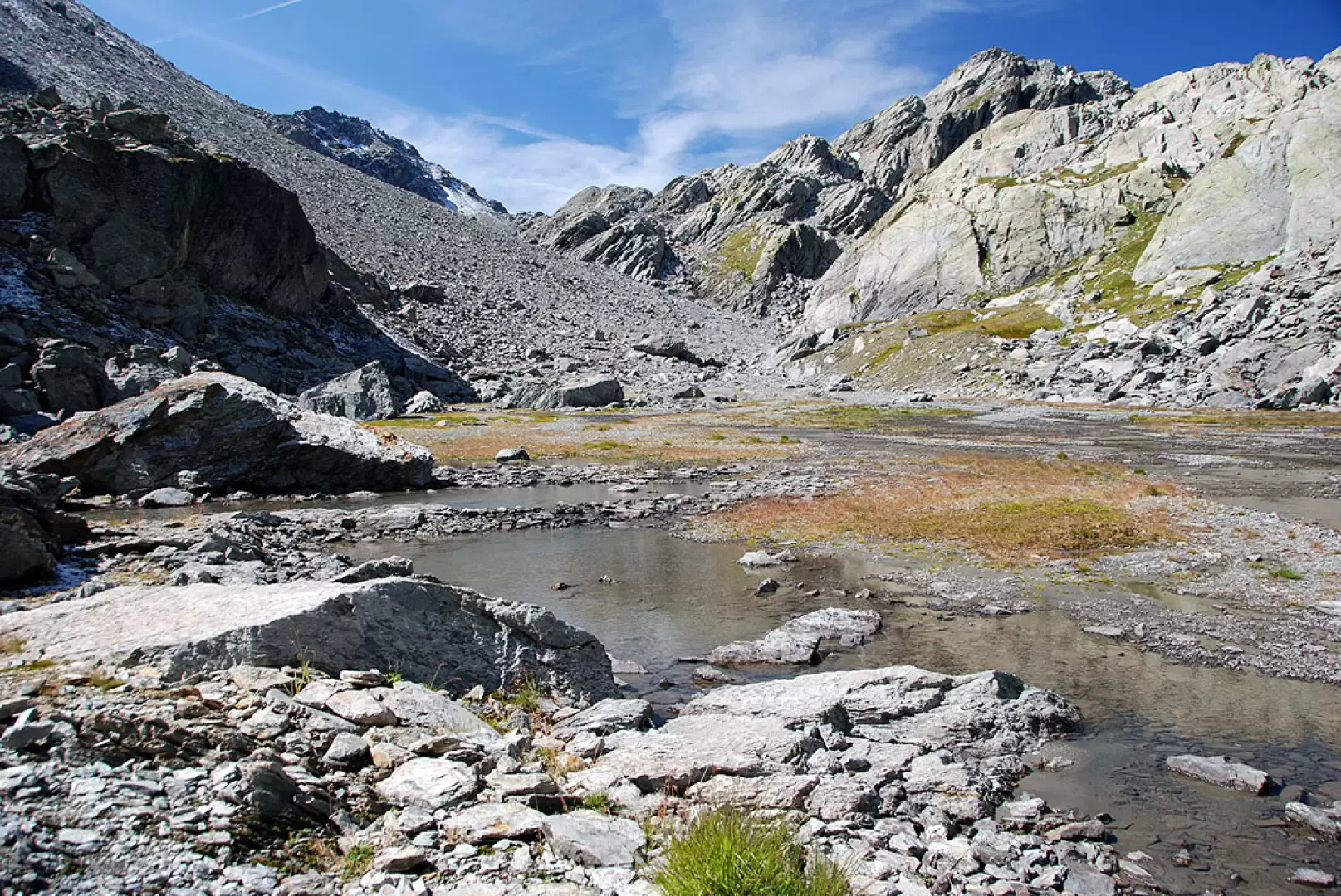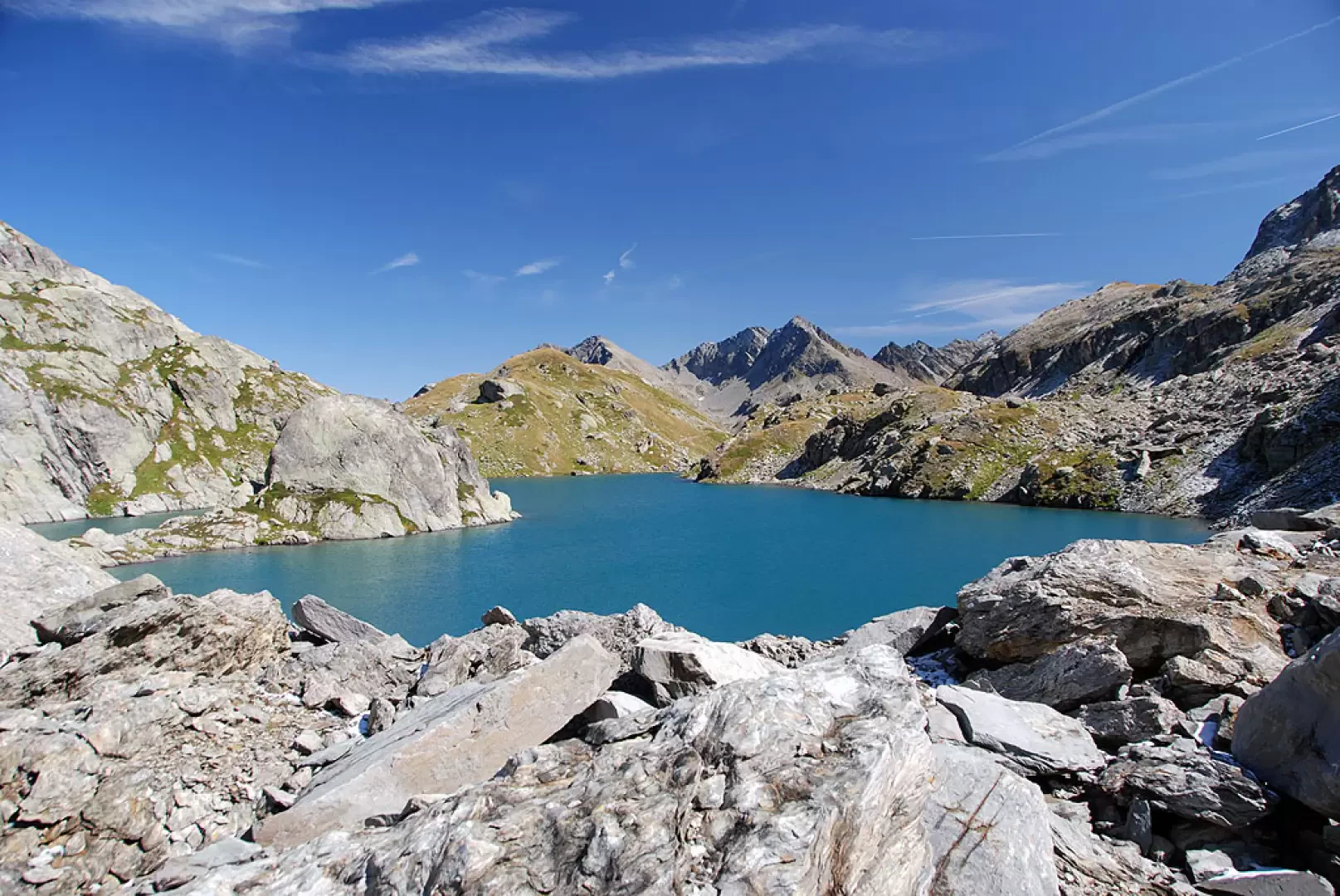 La Lex Blanche è stata la meta più elevata di una bellissima giornata escursionistica nel comune di La Thuile. Partito da La Joux ho seguito il sentiero 7, poi il 18 alla ricerca dei laghi di Thuilette e della Comba di Sauzin. Al termine del sentiero 18 mi sono innestato sul sentiero 8 raggiungendo rapidamente i laghi di Bellacomba. Lasciato il secondo lago (con un filo di neve sul versante in ombra) risalivo l'impervio ambiente che conduce al Col de la Lex Blanche, superato il colle ho affrontato questa salita molto interessante, non difficile con un ultimo passaggio di natura alpinistica. Per buoni camminatori (ma consiglio il percorso diretto senza la variante dei sentieri 7 e 18). I tempi riportati sono relativi al giro che ho effettuato, compresa la salita al Col Tachuy al rientro prima della discesa a La Joux.